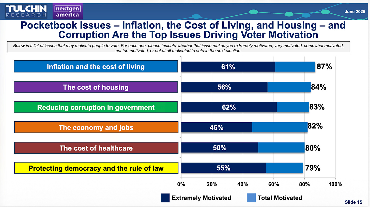 As our Tulchin poll showed, and as a recent UChicago poll explored further, young people are extremely concerned about corruption in politics, and they understand how this corruption is making their lives unaffordable and unlivable.